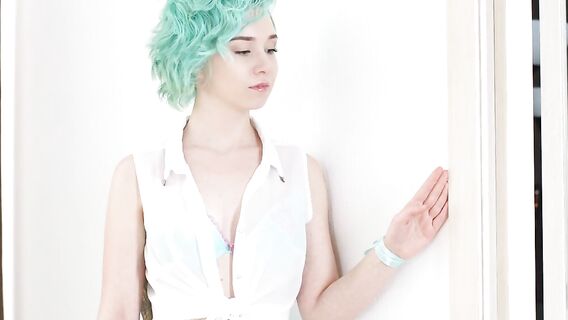 Озорная русская девочка с голубыми волосами умеет соблазнить мужчину. Она делает классный минет, даёт трахнуть себя раком и пускает член в узкий анал. А парень заливает спермой её язык.