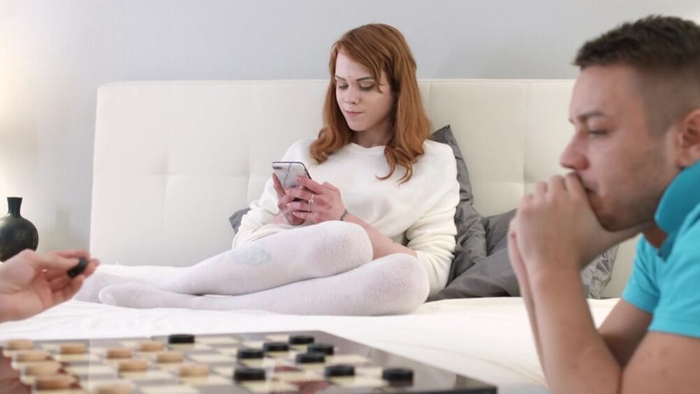 Мжм секс с двойным проникновением в худую рыжую сучку в гольфах